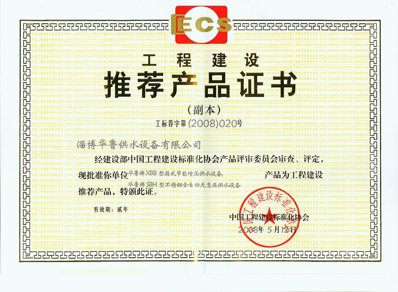 工程建設推薦證書(shū)